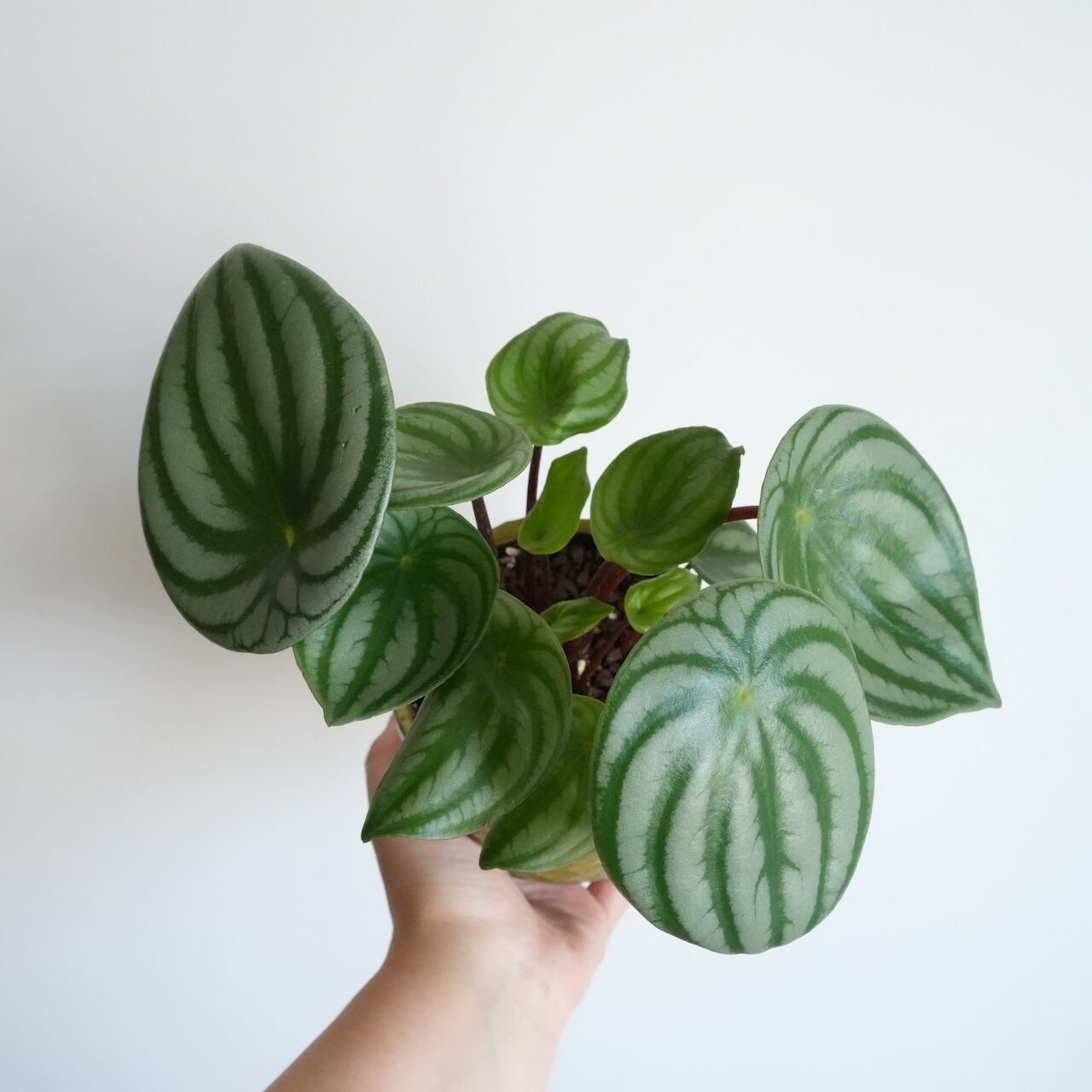 【送料込み】多肉植物 ペペロミア サンデルシー(スイカペペ)4号サイズ 陶器鉢