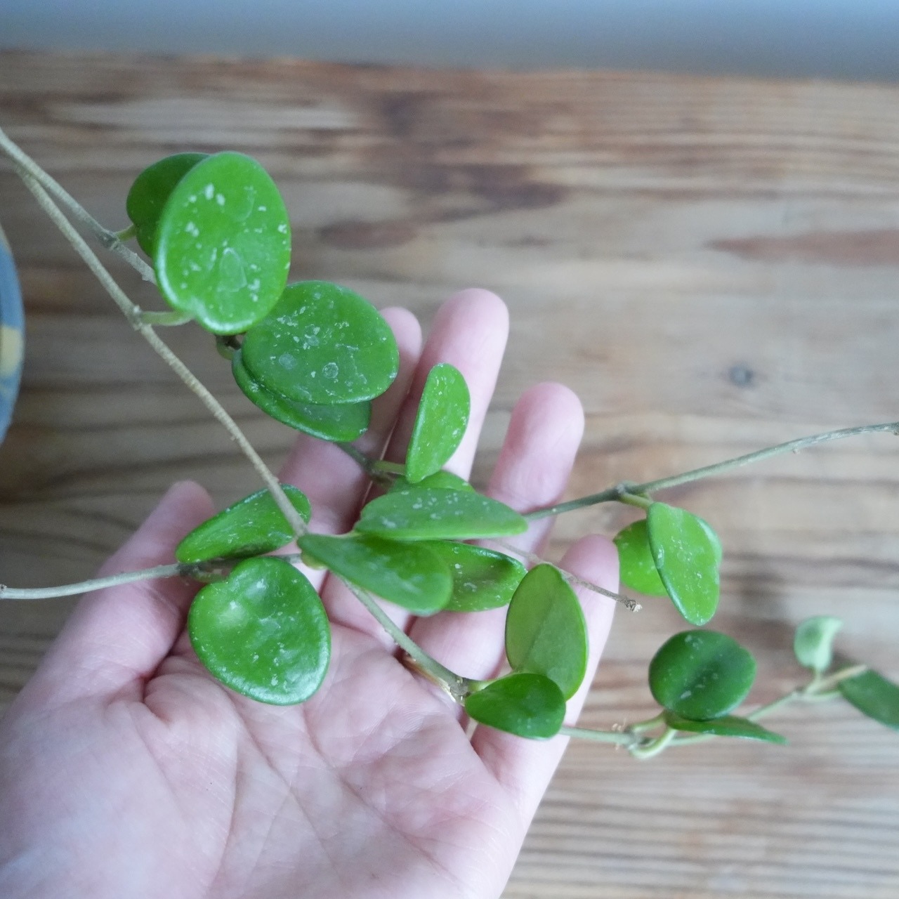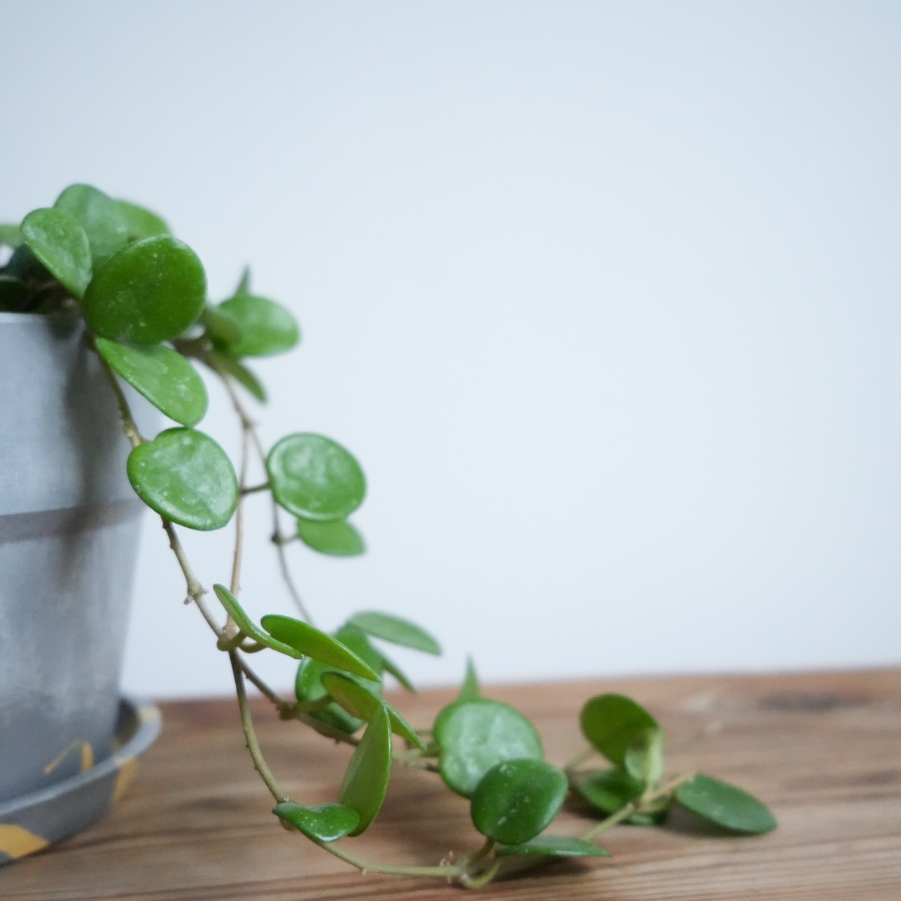 ホヤは肉厚の葉が特徴のつる性の植物です。マチルダはまん丸な葉の形によく見ると白い小さな模様が可愛いちょっと珍しい品種です。