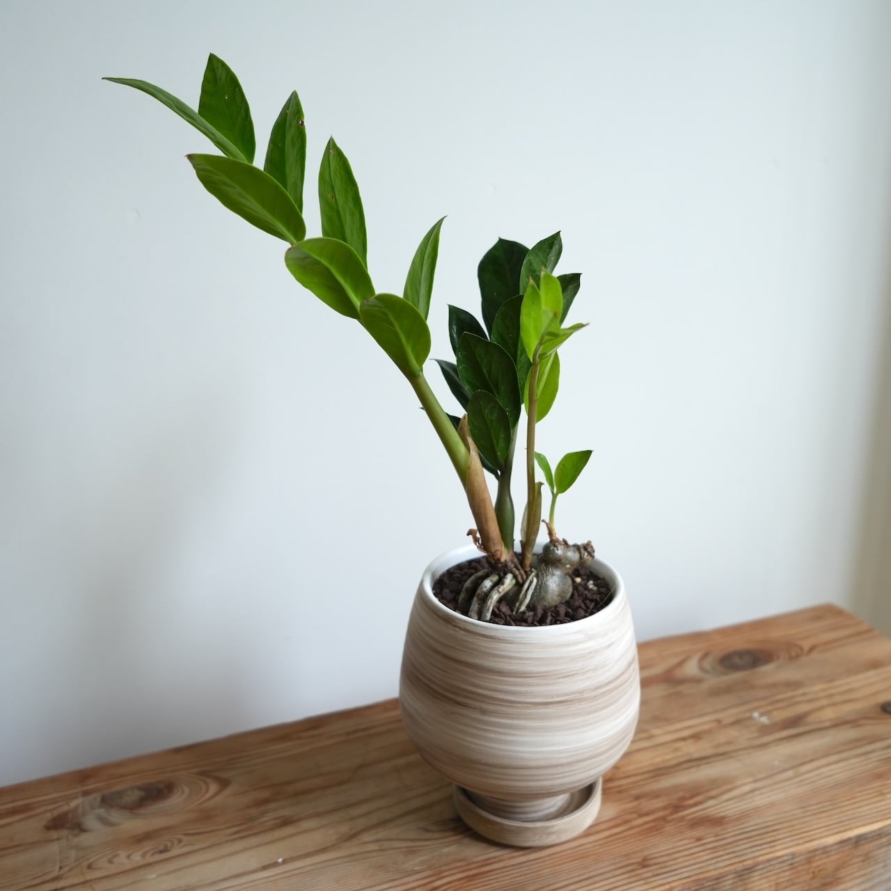 【送料込み】観葉植物 ザミオクルカス ザミーフォリア 根上がり仕立て 4号サイズ 陶器鉢