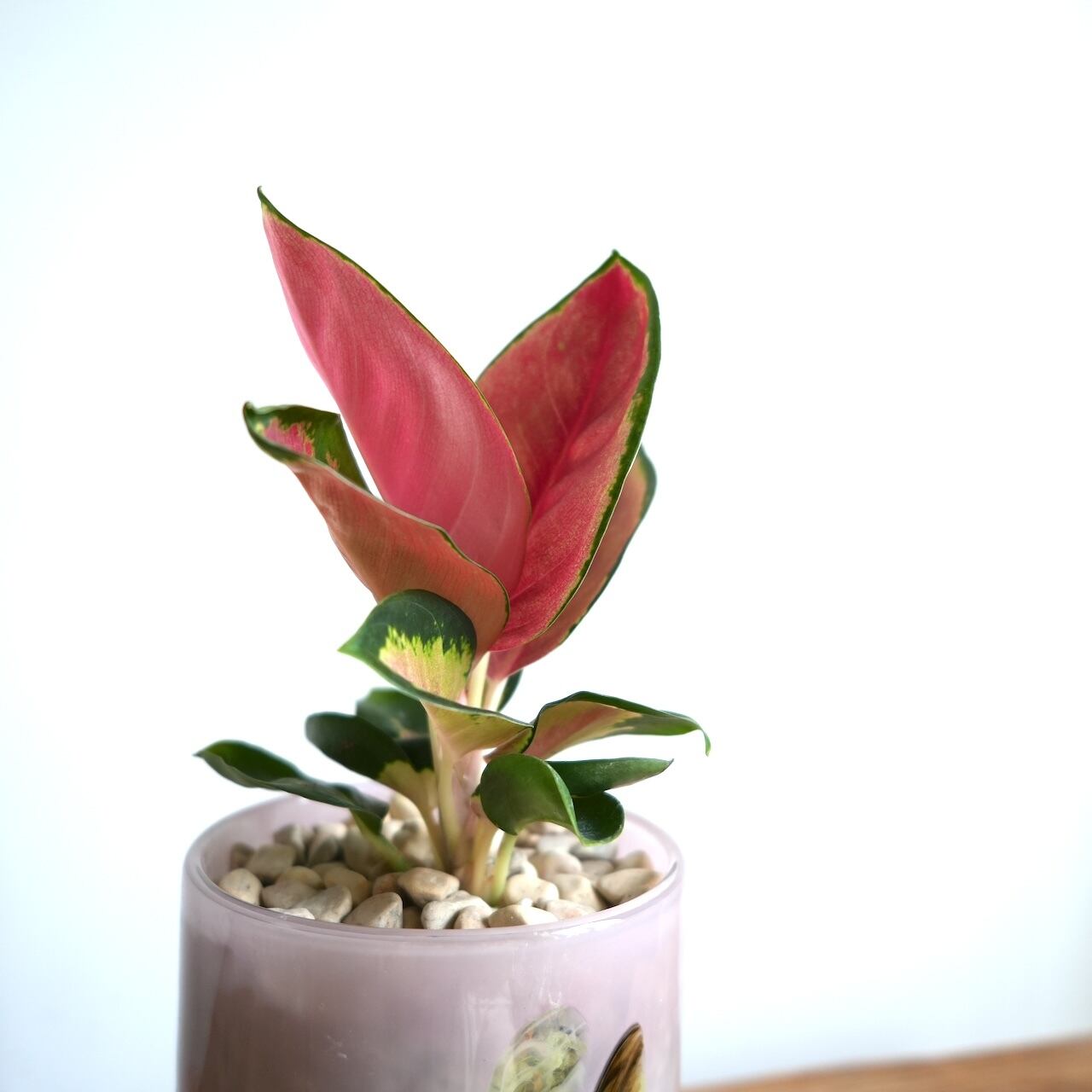 【送料込み】観葉植物 アグラオネマ タイランドレッド 4号サイズ ガラスポット