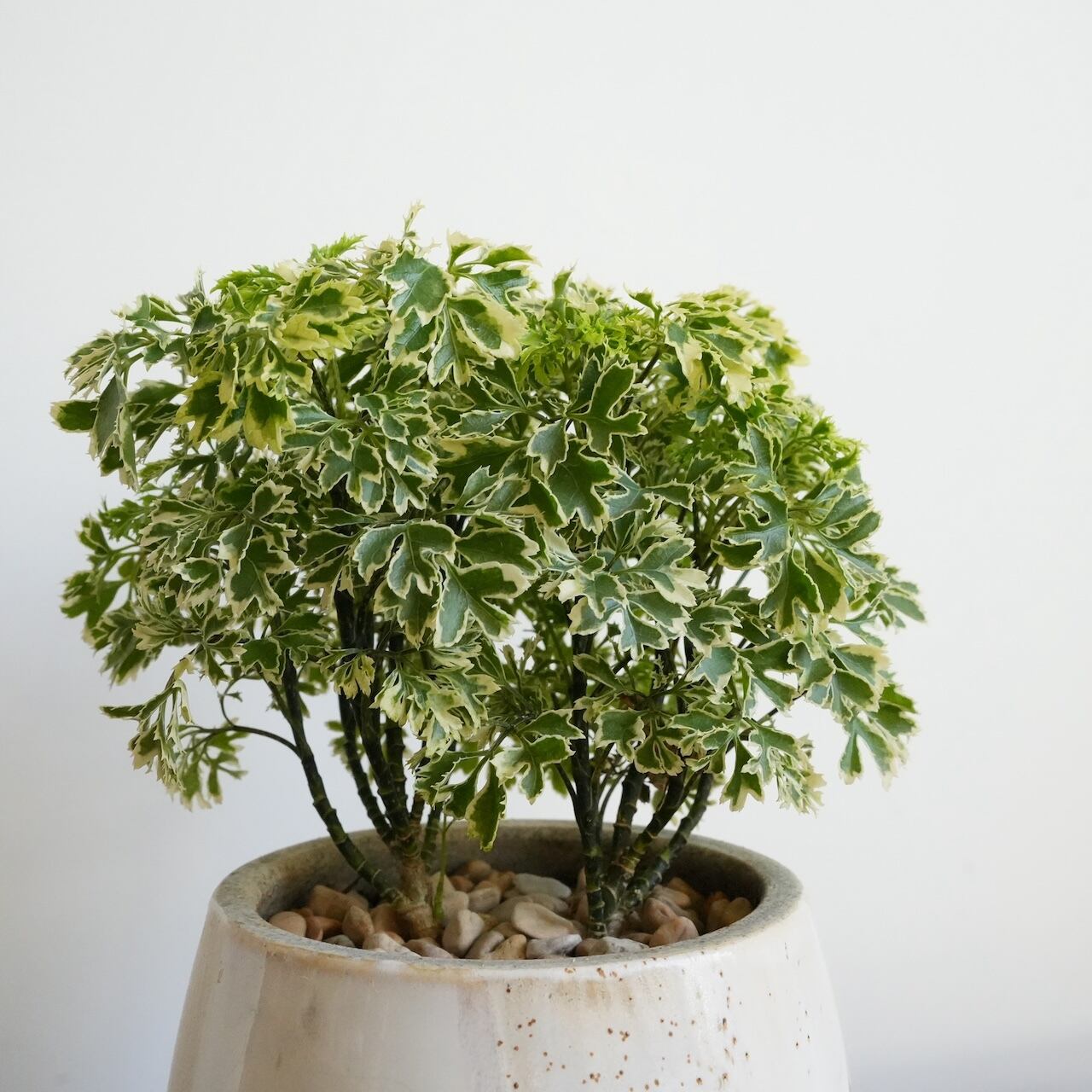 ギザギザの小さな葉が特徴のポリシャス。その葉の形と台湾では縁起の良い植物として昔から親しまれてきたため、別名「タイワンモミジ」と呼ばれている植物です。