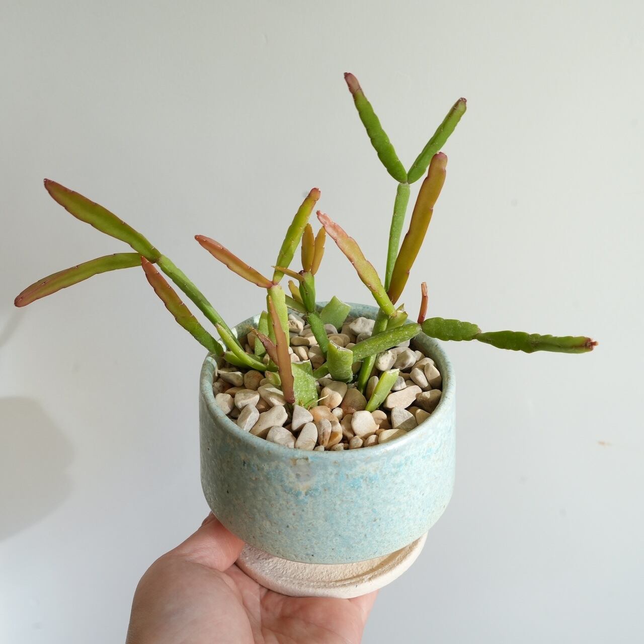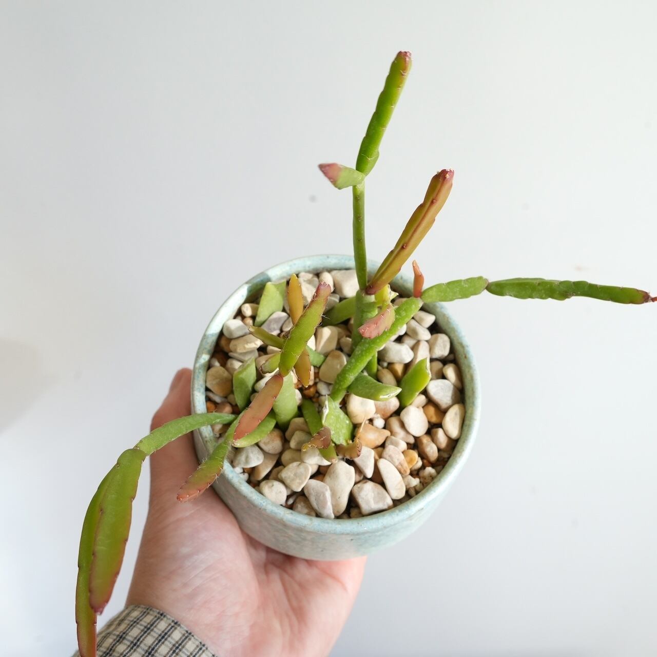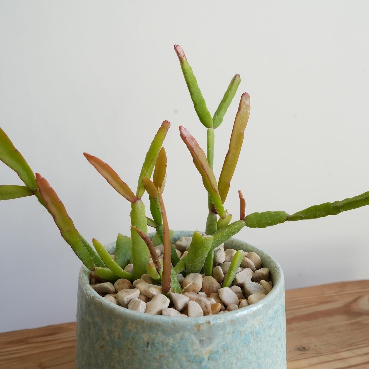 森の中で樹木などに着生して生きている様子から「森林サボテン」と呼ばれているサボテンの一種です。四方にのびた茎はよく見ると小さなサボテンの形をしていてなんとも愛らしい姿をしています。