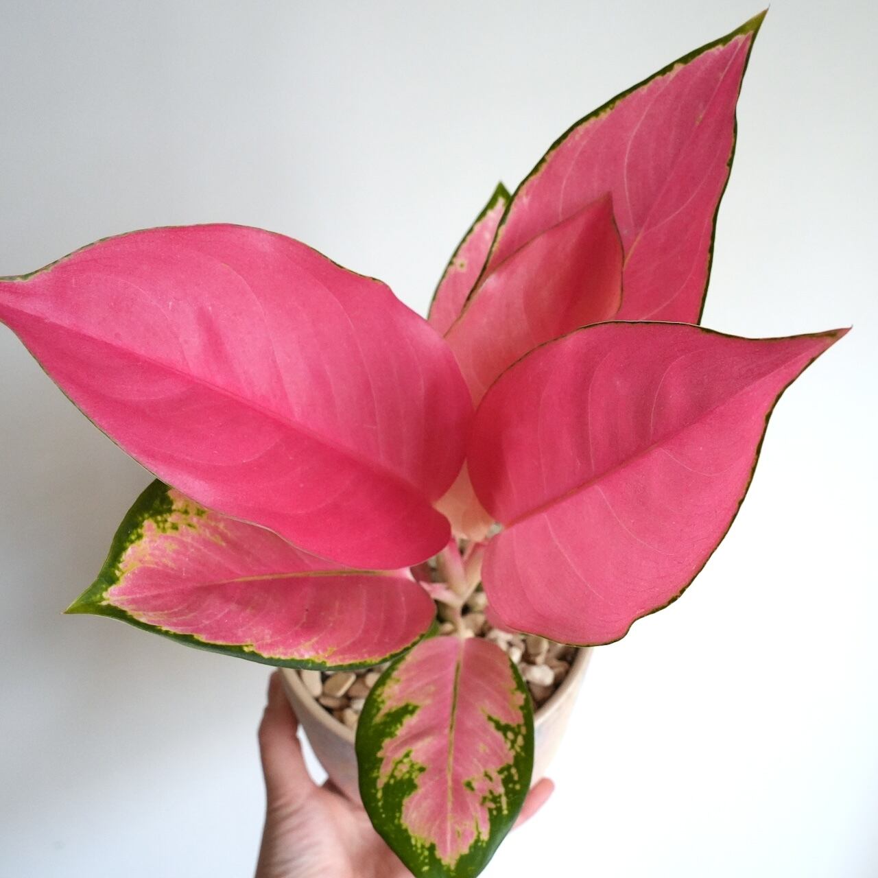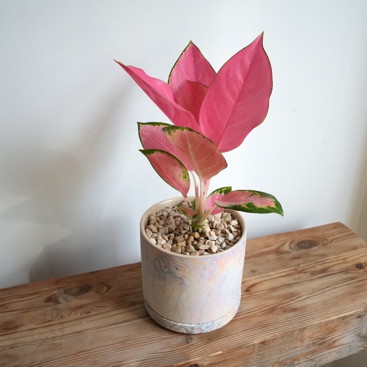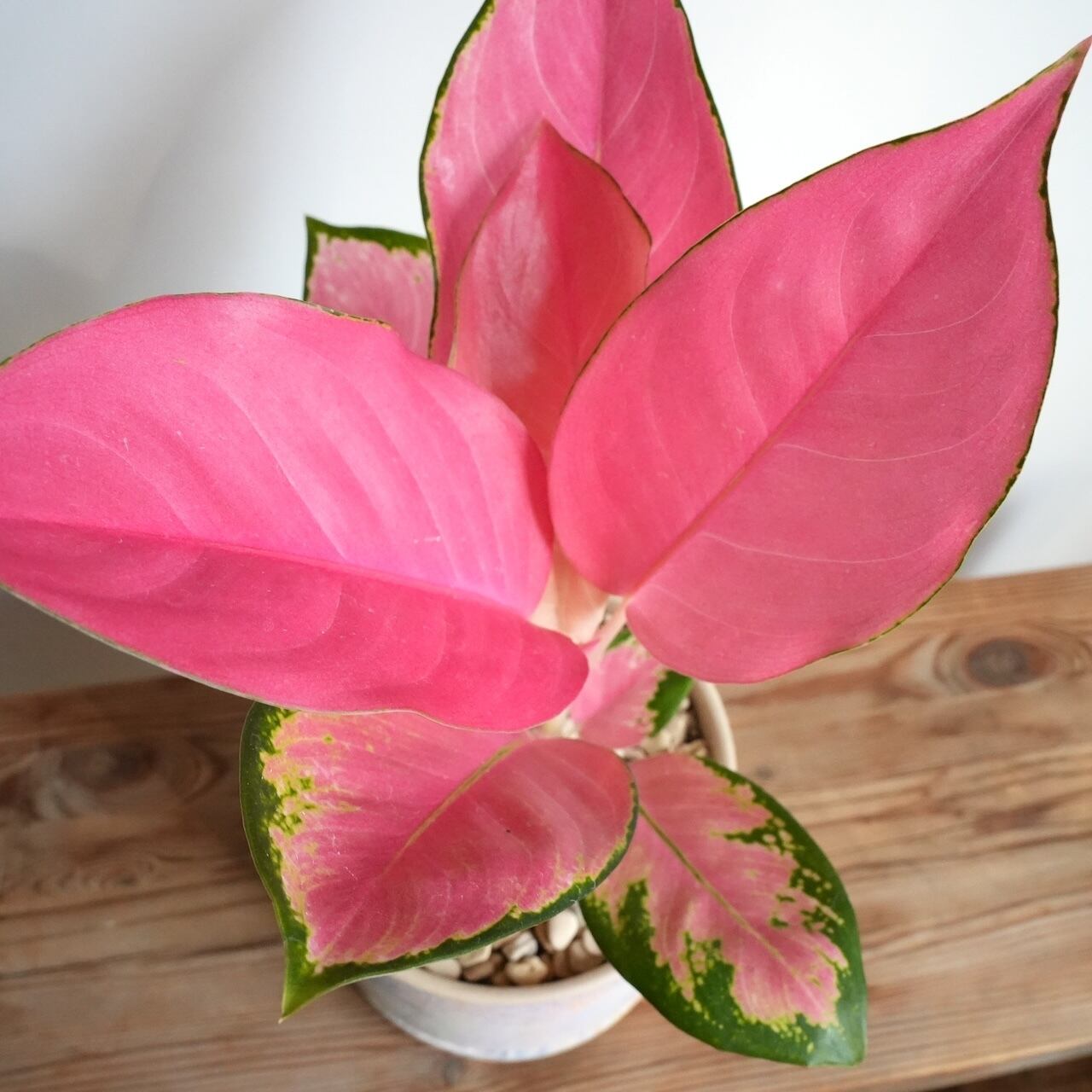 チャイナレッドはグリーンのふちどりが入った淡いピンクの葉が美しい品種になります。赤系のアグラオネマの中でも優しいピンクで柔らかい印象です。