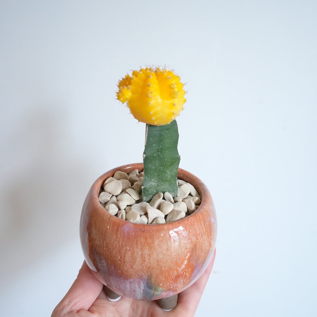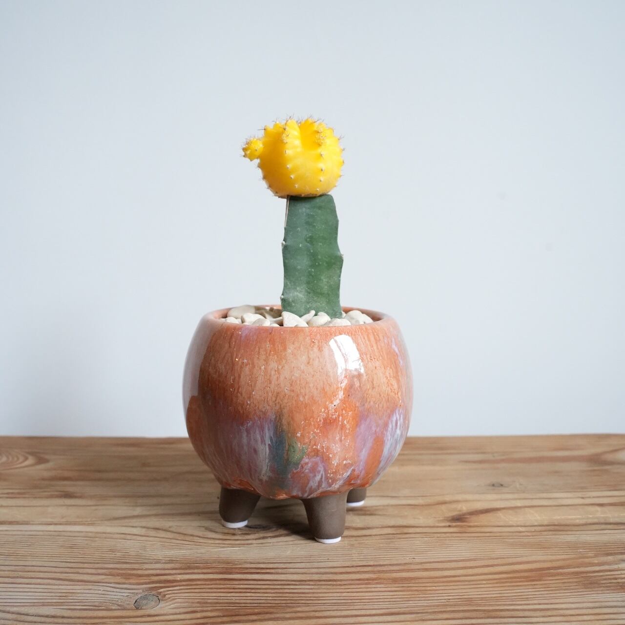 柱サボテンを台木とした斑入りのサボテンです。ピンクや黄色、赤色のカラフルでポップな姿が魅力で、その見た目から別名「キャンドルサボテン」と呼ばれ親しまれています。