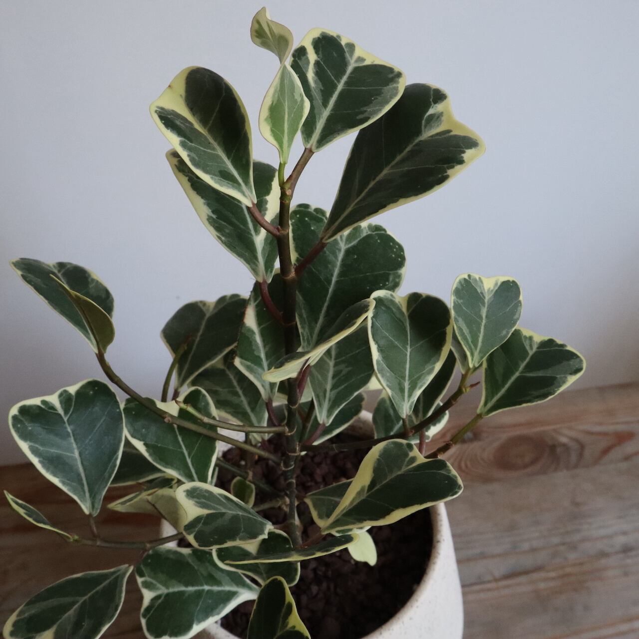 ご用意したハートの木は斑入りタイプで濃い目のグリーンとクリーム色の組み合わせが爽やかな印象でお部屋を明るく彩ってくれそうです。